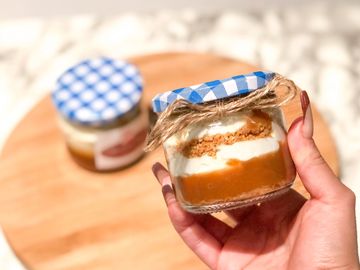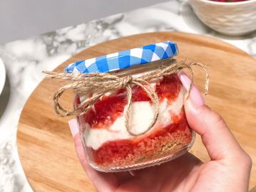 Layers of no baked and egg free cheesecake fluff, graham crackers and your choice of 3 sauces (strawberry, Ducle de Leche or Mango Passion fruit)