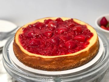 Our classic cheesecake with a graham cracker crust, topped off with fresh strawberry halves coated in a strawberry lemon sauce.