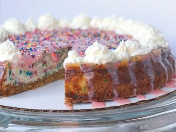 Our classic cheesecake with a Golden Oreo crust, topped off with a homemade white chocolate ganache and homemade whipped cream swirls.