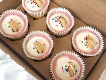 Our moist and buttery cheesecake flavoured cookies with strawberry pieces and white chocolate chips