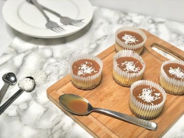 Our classic cheesecake with a graham cracker crust, topped off with a smooth caramel sauce and coconut shreds.